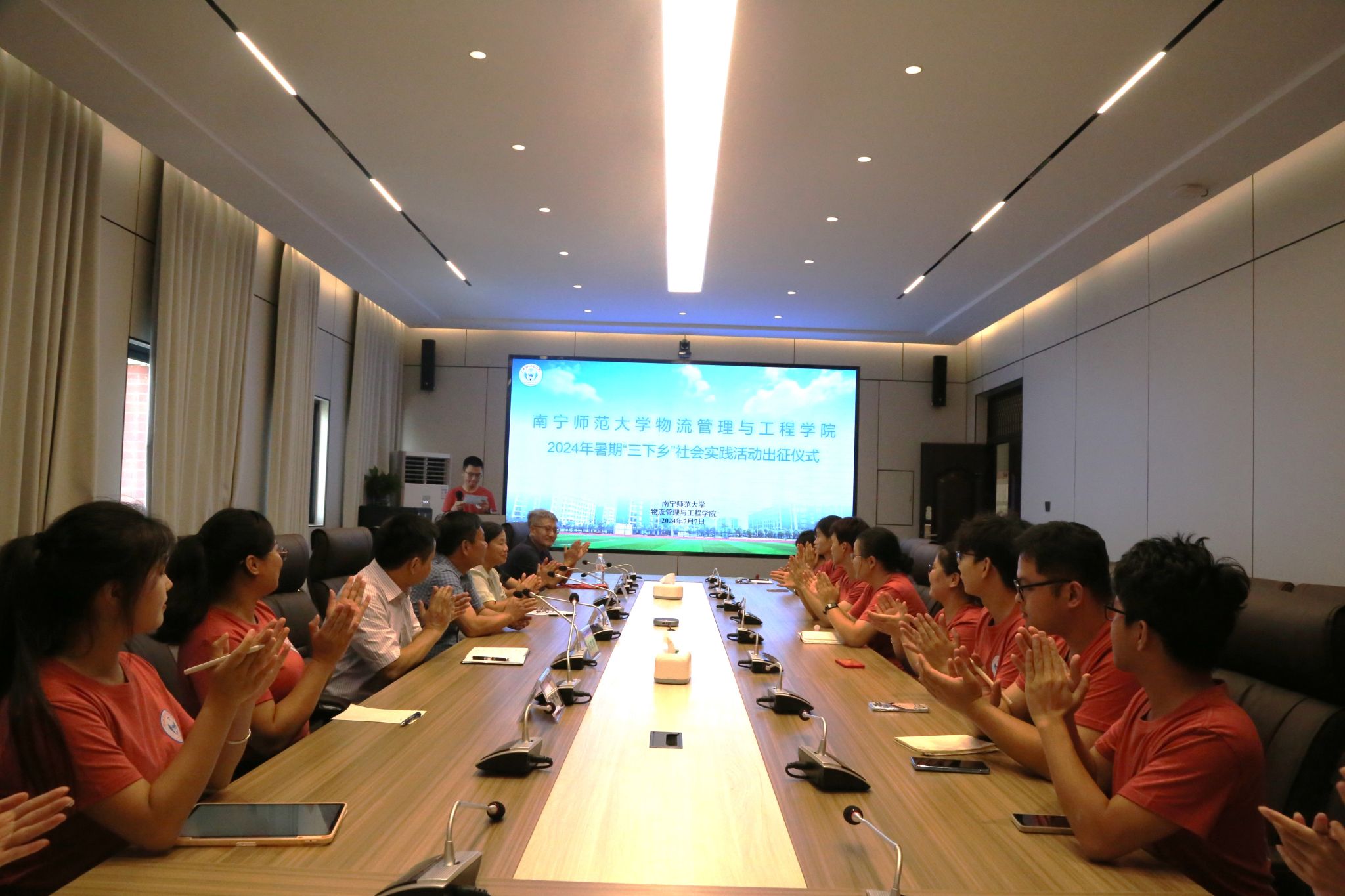 2024年暑期“三下乡”社会实践活动出征仪式在武鸣校区地化楼C413会议室举行。学院党委陈兵书记、汪德荣院长、黄宇副书记、蔡宏果副院长、带队老师徐志刚、黄海嫚以及全体实践团成员参加了出征仪式。