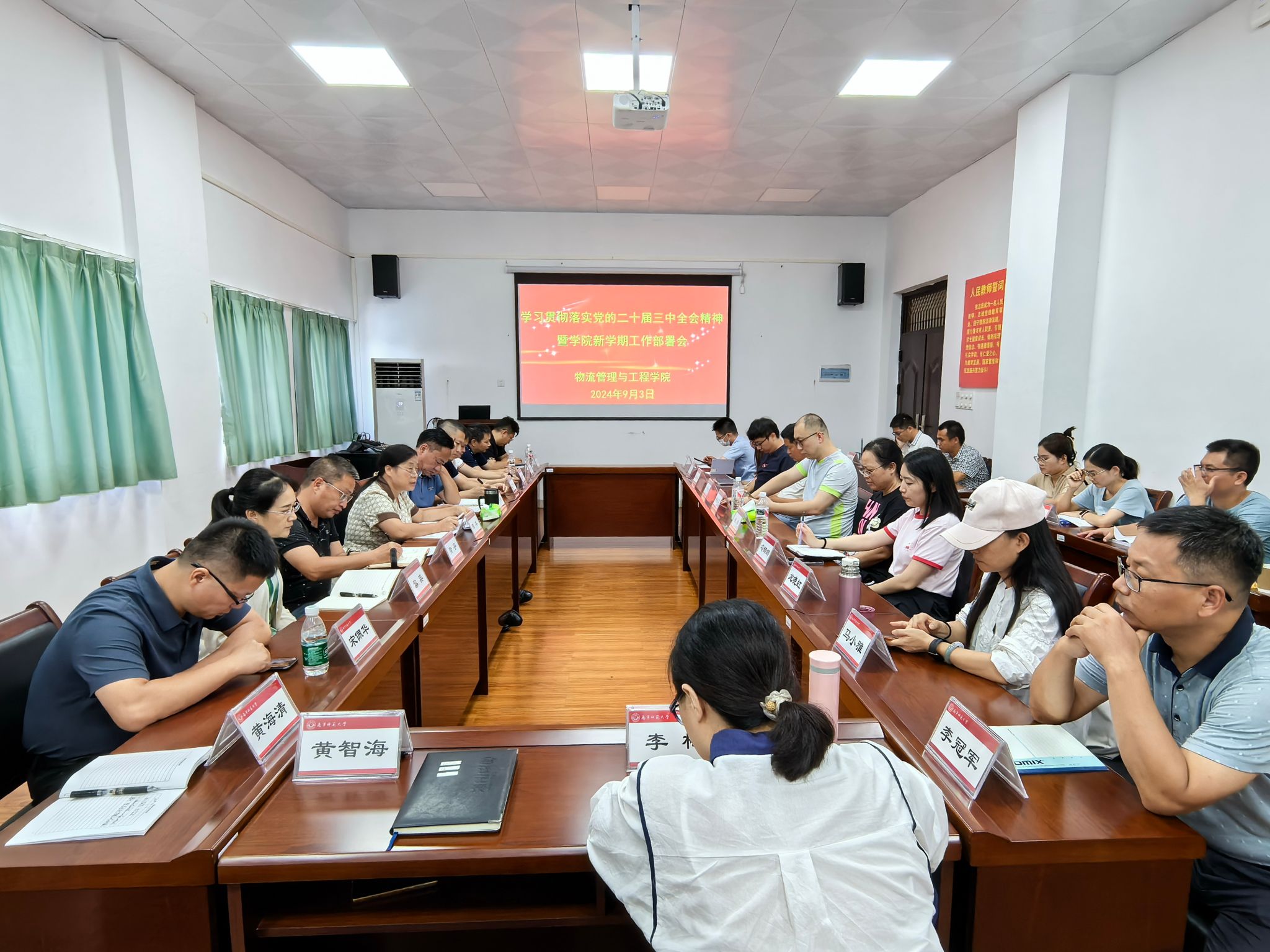在武鸣校区地化楼C414室召开学习贯彻党的二十届三中全会精神暨新学期工作部署会,会议由学院院长汪德荣主持,学院全体教职工参加此次会议。