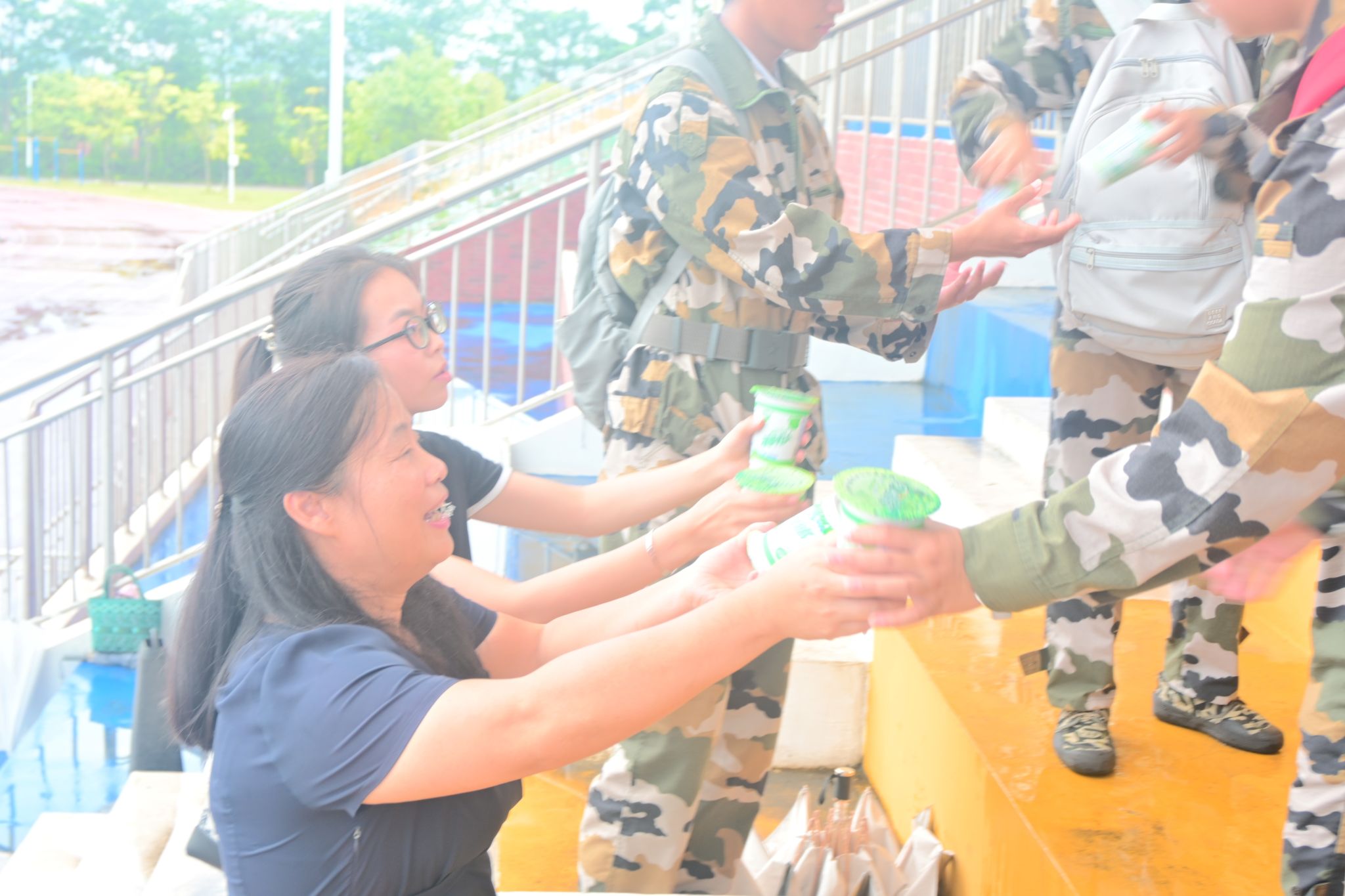 随后,学院领导和老师们为同学们送上了清凉解暑的饮料,同学们接过慰问品,脸上洋溢着幸福的笑容。他们纷纷表示,一定会牢记学院领导和老师们的嘱托,以更加饱满的热情和顽强的斗志投入到军训中,圆满完成军训任务。