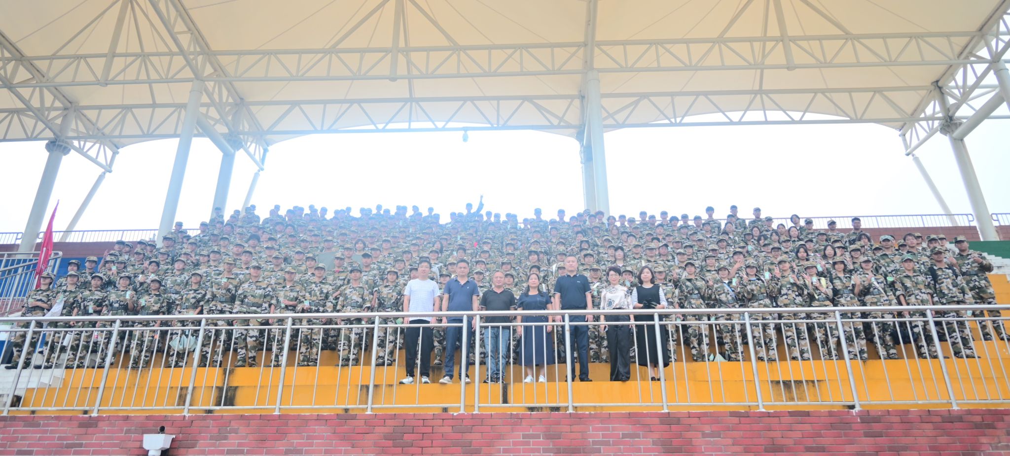 在教官的带领下,2024级全体学生身着整齐的军训服,以挺拔的军姿、坚定的眼神迎接学院领导、老师们的到来。