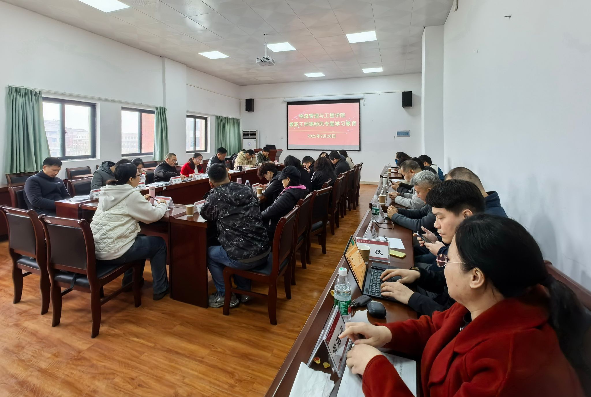 在武鸣校区地化楼C414室开展2025年春季学期教职工师德师风专题学习教育。会议由学院党委书记陈兵主持,学院全体教职工参加了学习教育会。
