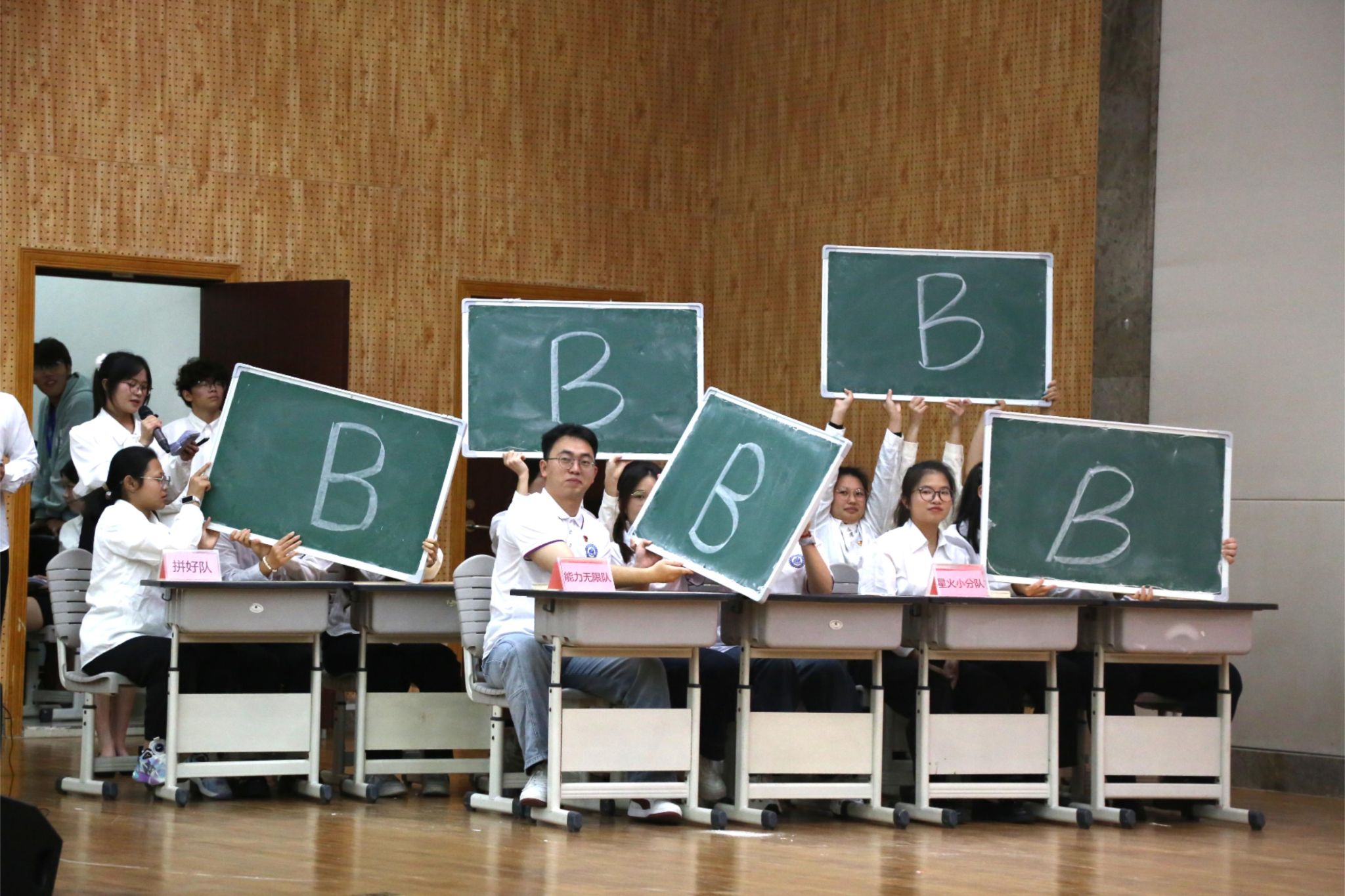 经激烈角逐,“拼好队”荣获一等奖,“从容应队”获二等奖,“能力无限队”获三等奖,“星火小分队”获最佳人气奖,其余队伍获优秀奖。学院领导与评委老师为获奖队伍颁奖并合影留念。