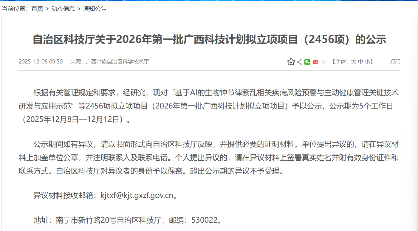 4项项目入选2026年广西科技计划拟立项名单