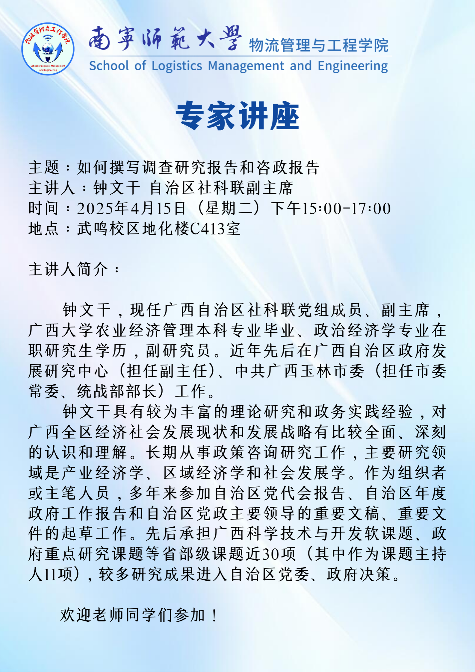 学术讲座预告:如何撰写调查研究报告和咨政报告