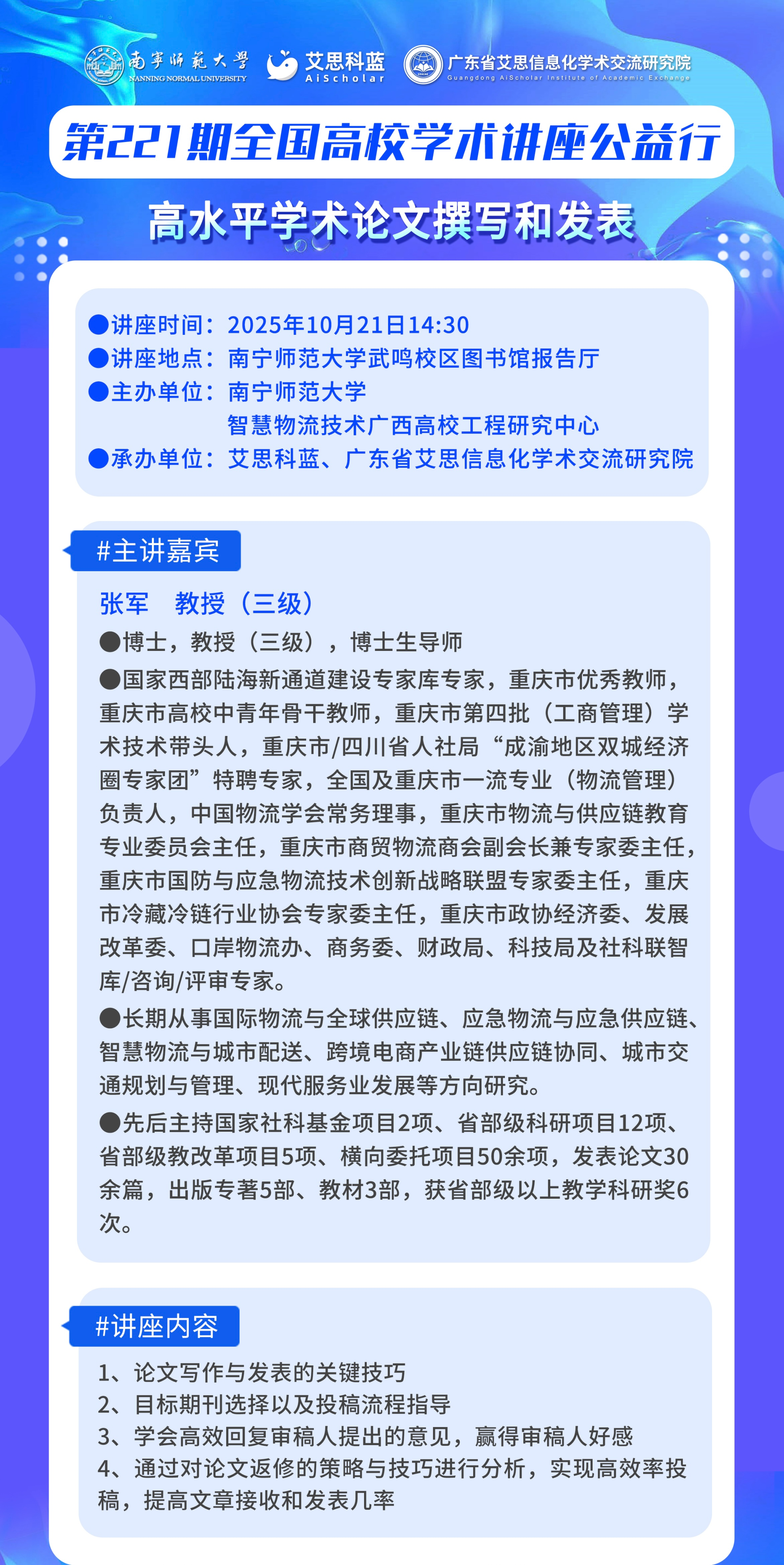 全国高校学术讲座公益行:高水平学术论文撰写和发表