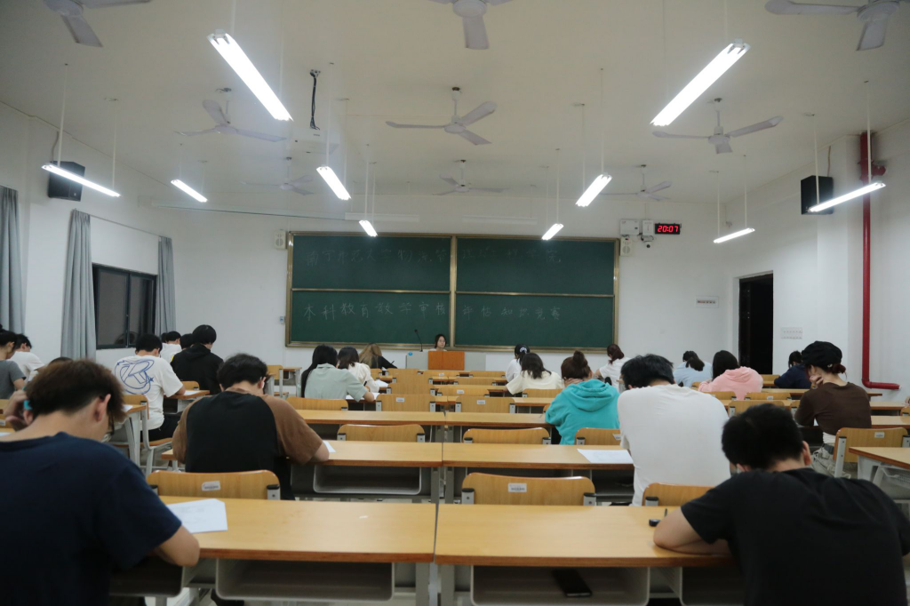 赛前,各班通过召开迎评促建专题班会、主题团日活动等形式强化了教学审核评估相关知识的学习。经过前期的认真学习,积极备赛,学院于3月31日晚在武鸣校区实验楼举行了教育教学审核评估知识竞赛,竞赛试题设计紧扣《新一轮本科教育教学审核评估应知应会(基础篇)》,考试过程中,参赛人员严格遵守考试纪律,专心答题,考场十分安静。经过评比,最终梁欣等17名同学在本次竞赛中获奖。