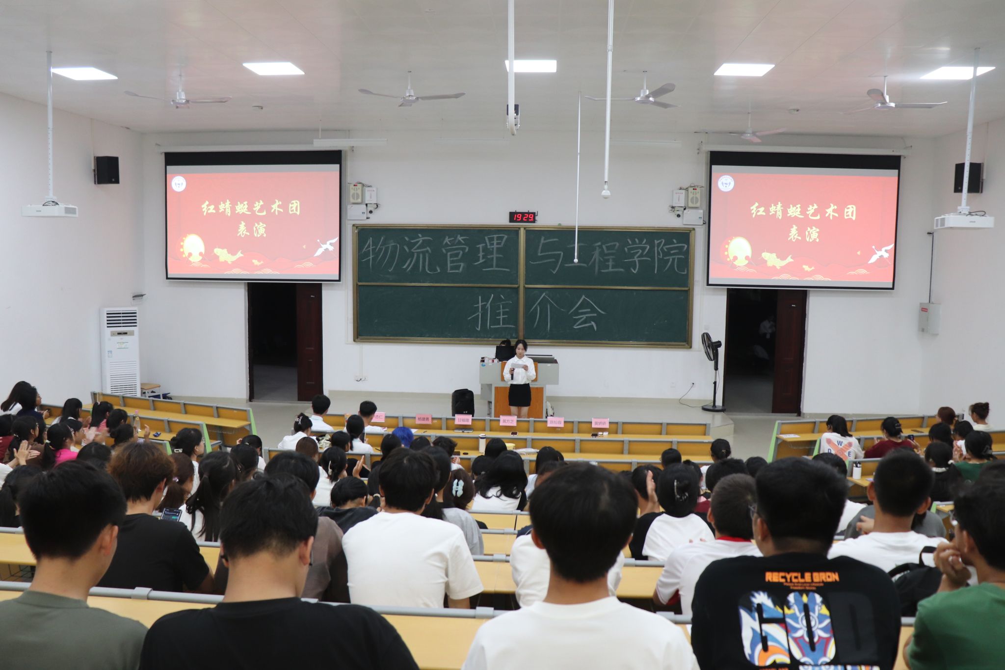 推介会在红蜻蜓艺术团活力四射的表演中激情开场,瞬间点燃了现场的气氛。紧接着,团委、学生会各部门纷纷闪亮登场,通过播放精彩的PPT和生动的自我介绍,向新生们全方位展示部门的魅力与风采,新生们初步领略了院团委和学生会的丰富工作内容。
