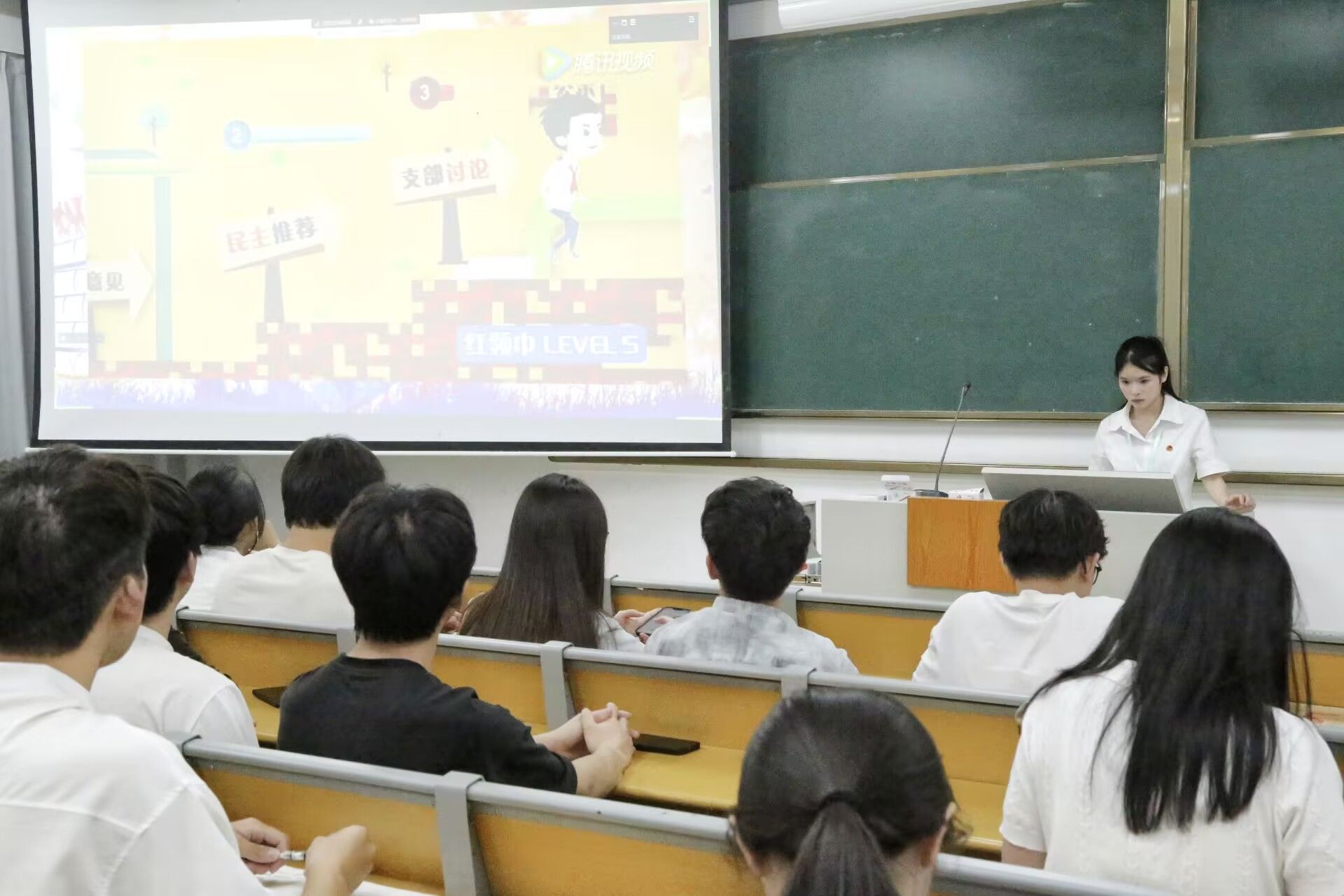 第一讲中,学院兼职辅导员成晶晶以“青春的力量:解读中国共青团团章”为主题,带领积极分子们层层了解团章总则、团员与团组织、团徽与团歌等基本内容与要求。她指出中国共产党的领导是中国特色社会主义最本质的特征,是中国特色社会主义制度最大优势,要求团员以及积极分子们坚决拥护中国共产党的领导,并在实践中践行初心与使命。