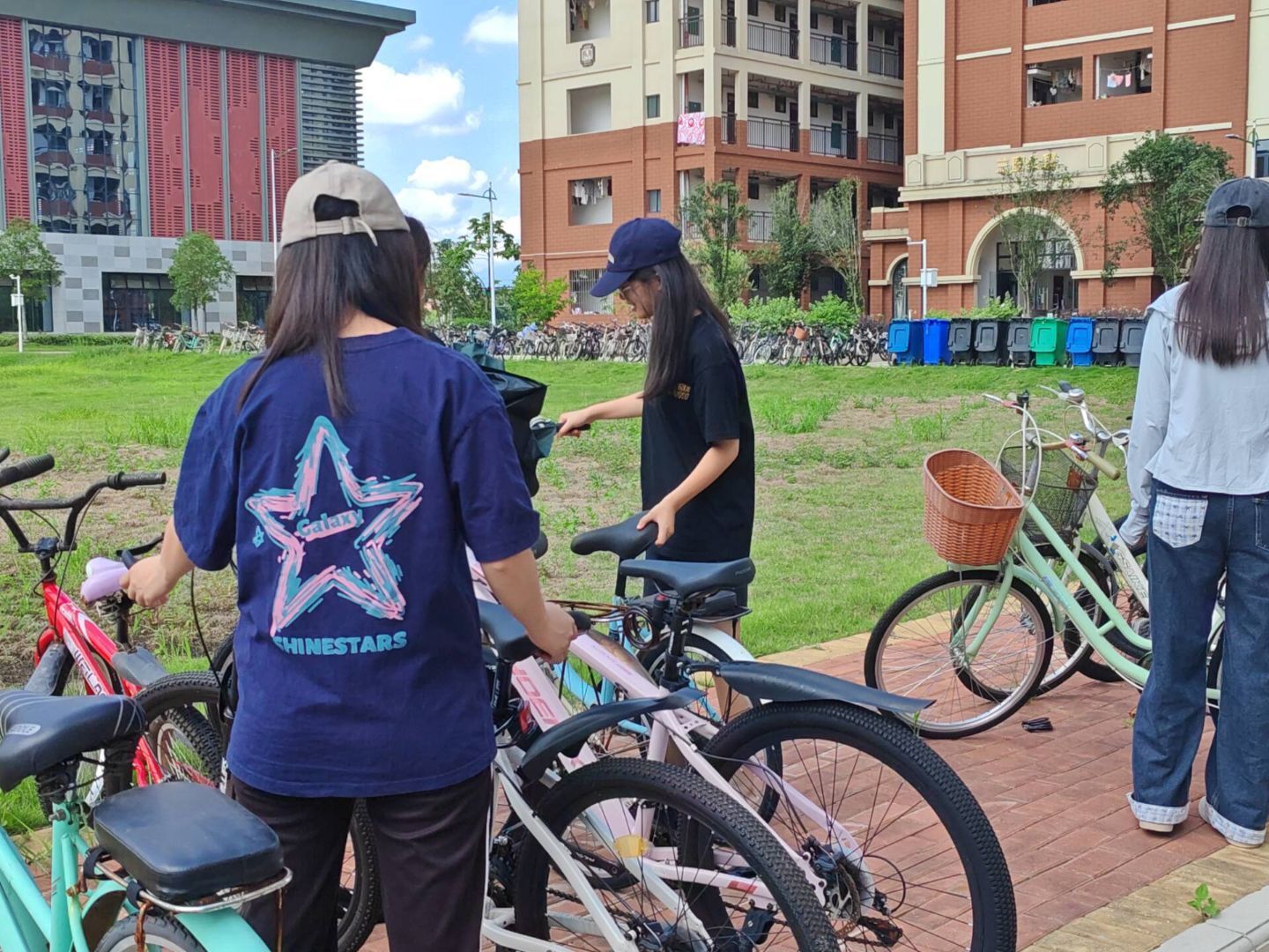 活动当天,受助学生准时在指定地点集合,分为4个小组,听从各自小组长的安排,对校园内的共享单车进行规范整理。在活动过程中,各组成员分工明确、配合紧密,有序将区域内的自行车摆放整齐,同时细心清理车筐内的垃圾,使道路变得更加畅通有序。